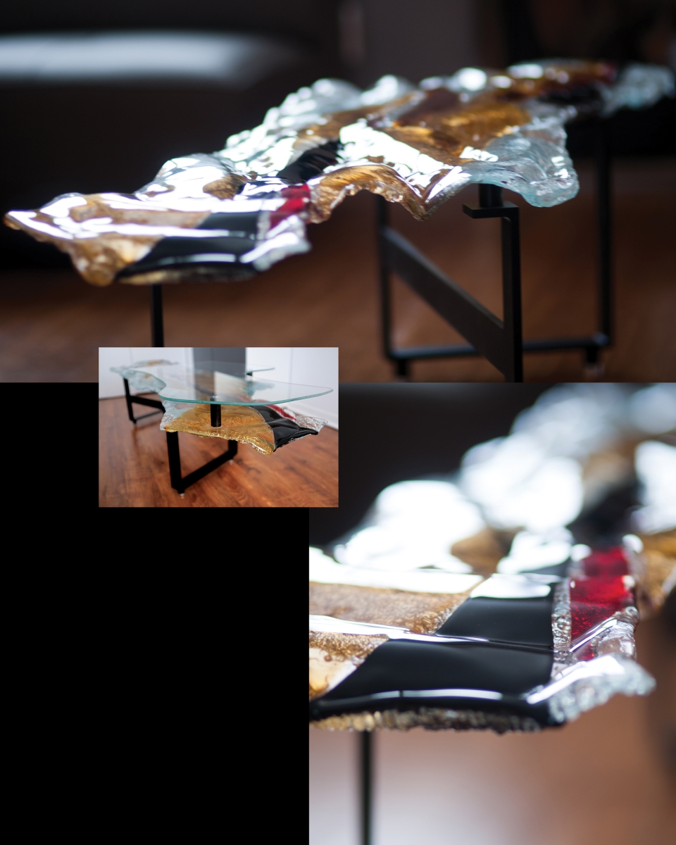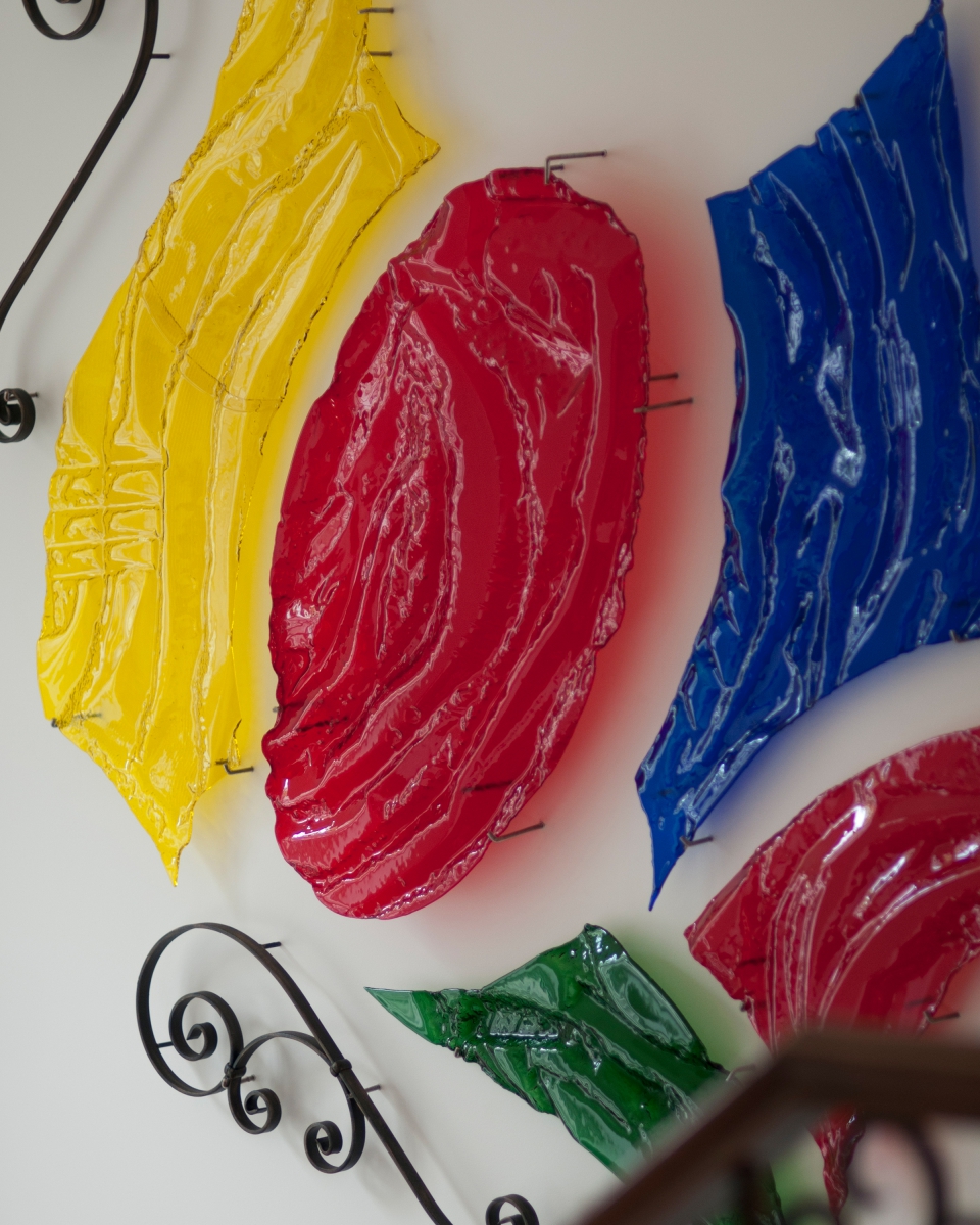 Sa passion pour le verre l’amène à démarrer son atelier pour y poursuivre son exploration en le mariant à d’autres matériaux. En utilisant la technique du thermoformage, elle s’approprie le verre et il devient ainsi une œuvre tridimensionnelle. Elle choisit le verre pour ses couleurs, sa fragilité et sa transparence, grâce à laquelle elle obtient la luminosité désirée.